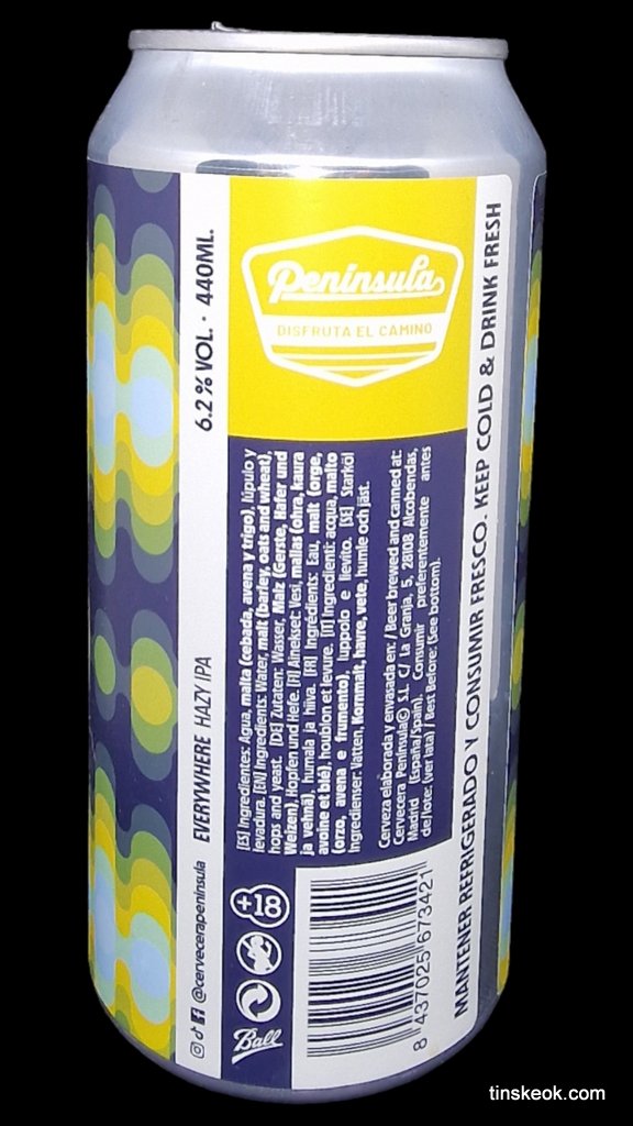 Por todas partes hay una cerveza artesanal tipo Hazy IPA que ofrece la cervecería artesanal madrileña Cervecera Península . Es una Hazy IPA al 6,2% muy fresca , con lúpulos Mosaic, Cryo Sabro y El Dorado que le dan sabores tropicales y cítricos. Perfecto para disfrutar en cualquier lugar.