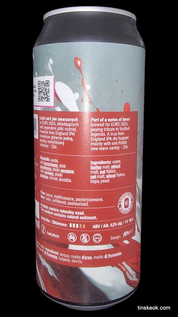 Parte de la serie de cervezas elaboradas para la EURO 2024, rindiendo homenaje a las leyendas del fútbol. Una auténtica New England IPA lupulada principalmente con una variedad de la nueva ola polaca: Zibi.