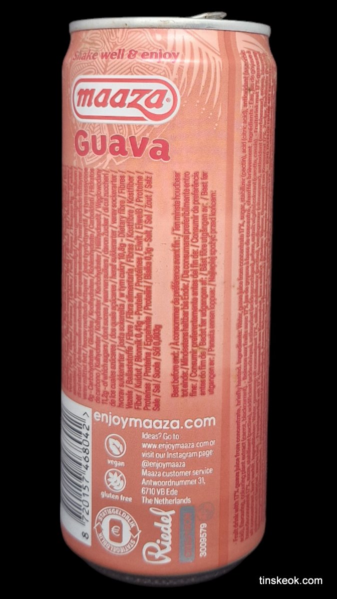 La guayaba, una fruta con forma de pera, es conocida por su delicado sabor, que recuerda a una combinación de pera y fresa. En Maaza utilizamos la variedad rosa de Sudáfrica por su sabor refinado y su textura cremosa. La guayaba está disponible en envases de cartón de 1 L, de vidrio de 1 L, de PET de 50 cl, de cartón de 33 cl, de vidrio de 33 cl, de lata elegante de 33 cl y de lata normal de 33 cl.