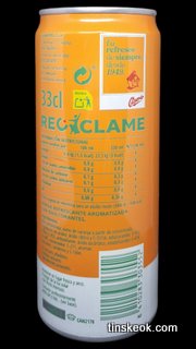 Agua carbonatada, zumo de naranja a partir de concentrado, reguladores de acidez: ácido cítrico y E-331iii, edulcorantes: E-952, E-954 y E-955, antioxidante: ácido ascórbico, estabilizantes: E-414 y E-445, conservador: E-211, aromas, colorantes: carotenos y E-160e.