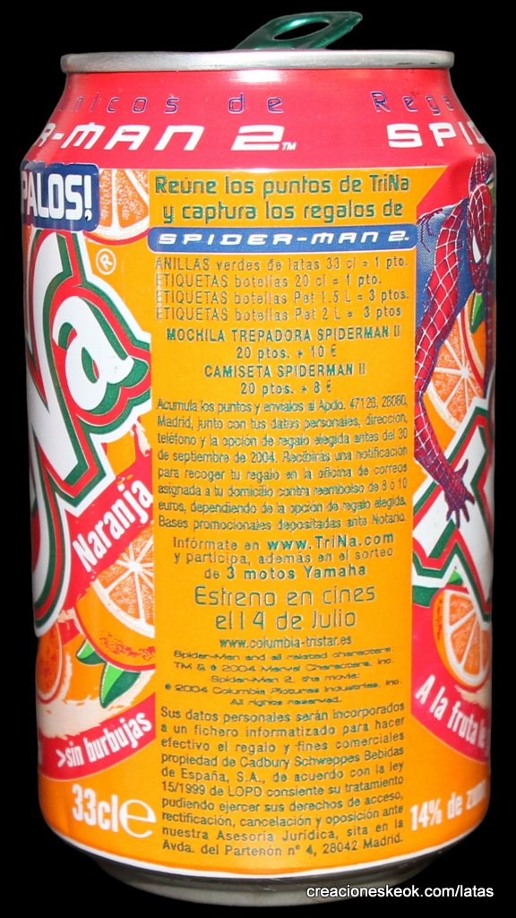 TriNa es una marca española de bebidas refrescantes sin gas. Fue el primer refresco de frutas sin burbujas en el mercado español sin gas, nacido en 1934 y con el nombre de TriNaranjus por su contenido: el zumo de tres naranjas. TriNa es una marca del grupo Schweppes Suntory España. Los orígenes de la TriNa se remontan a los años 30. Fue la creación de un pionero, el Dr. Trigo, que en 1934, desde su laboratorio de la calle Sagunto, lanzó en Valencia un refresco de naranja muy natural, sin burbujas, al que bautizó como Trinaranjus. Este nombre viene porque la base de su receta son tres variedades de naranja diferentes: Naranja Valencia, Salustiana y Cadenera. La compañía se expandió a lo largo de los años, hasta que en 1986 la marca renovó su imagen, su género (una Trina) y su nombre a TriNa. En 2009, Suntory Group adquiere la compañía Orangina Schweppes, y con ello, la marca TriNa. Este producto se comercializa en España y Portugal tanto en hostelería como en supermercados e hipermercados. Fuente : Wikipedia Leer un poco más de su historia
