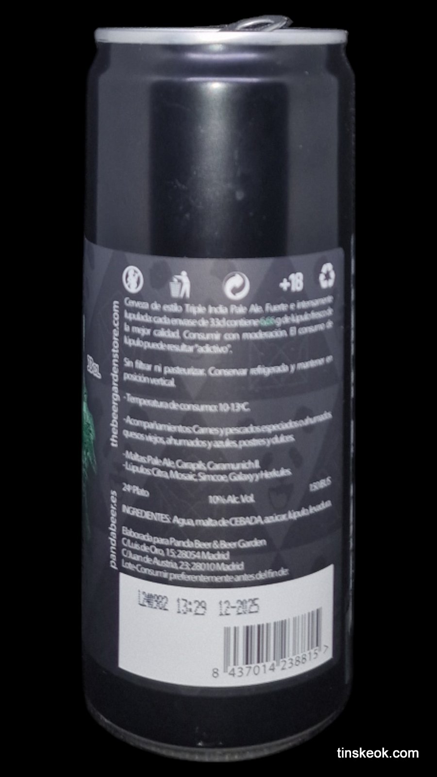 Cerveza Triple India Pale Ale, fuerte e intensamente lupulada, con 20 gr. de lúpulo fresco por litro. Sin filtrar ni pasteurizar. Maridaje: para acompañar con carnes y pescados especiados y/o picantes, quesos viejos, ahumados y azules. Y con postres y dulces contundentes.