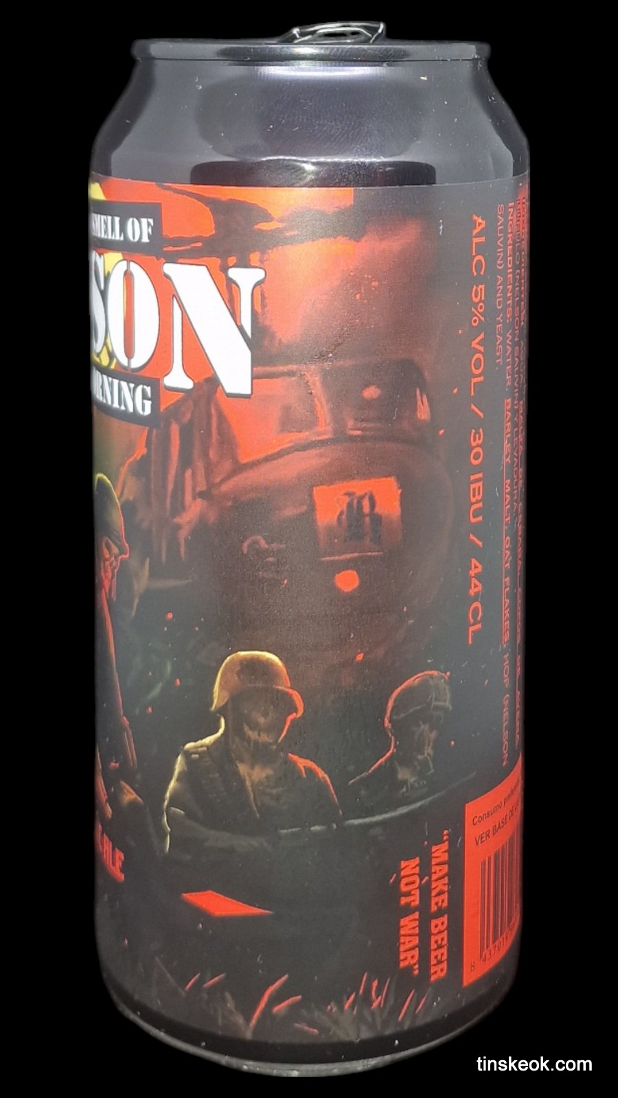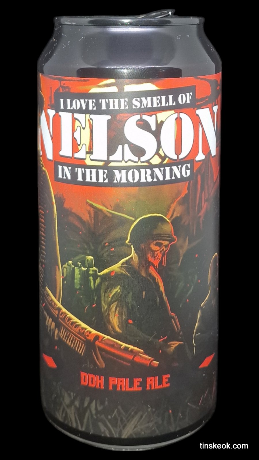 Reptilian I Love the Smell of Nelson in the Morning es una DDH Pale Ale monovarietal de lúpulo Nelson Sauvin. Turbia, densa y con amargor moderado, perfecta para degustar este lúpulo tan especial.