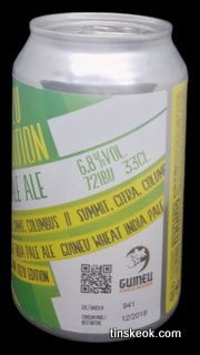 Antigua receta de la casa, que incluso está publicada en un libro. WIPA, una cerveza de color ámbar, de buena espuma cremosa y blanca, resultado del trigo utilizado en esta clásica receta de Guineu. Ya en nariz se pueden percibir esas notas del grano de trigo, como masa o grano crudos, que se entrelazan con lo cítrico del lúpulo. En boca, el amargor demora un segundo en aparecer, pero cuando se percibe inunda la boca de sabores cítricos y frutales. Sin duda, lo mejor de los 2 mundos se une en esta cerveza de trigo ultra lupulada.