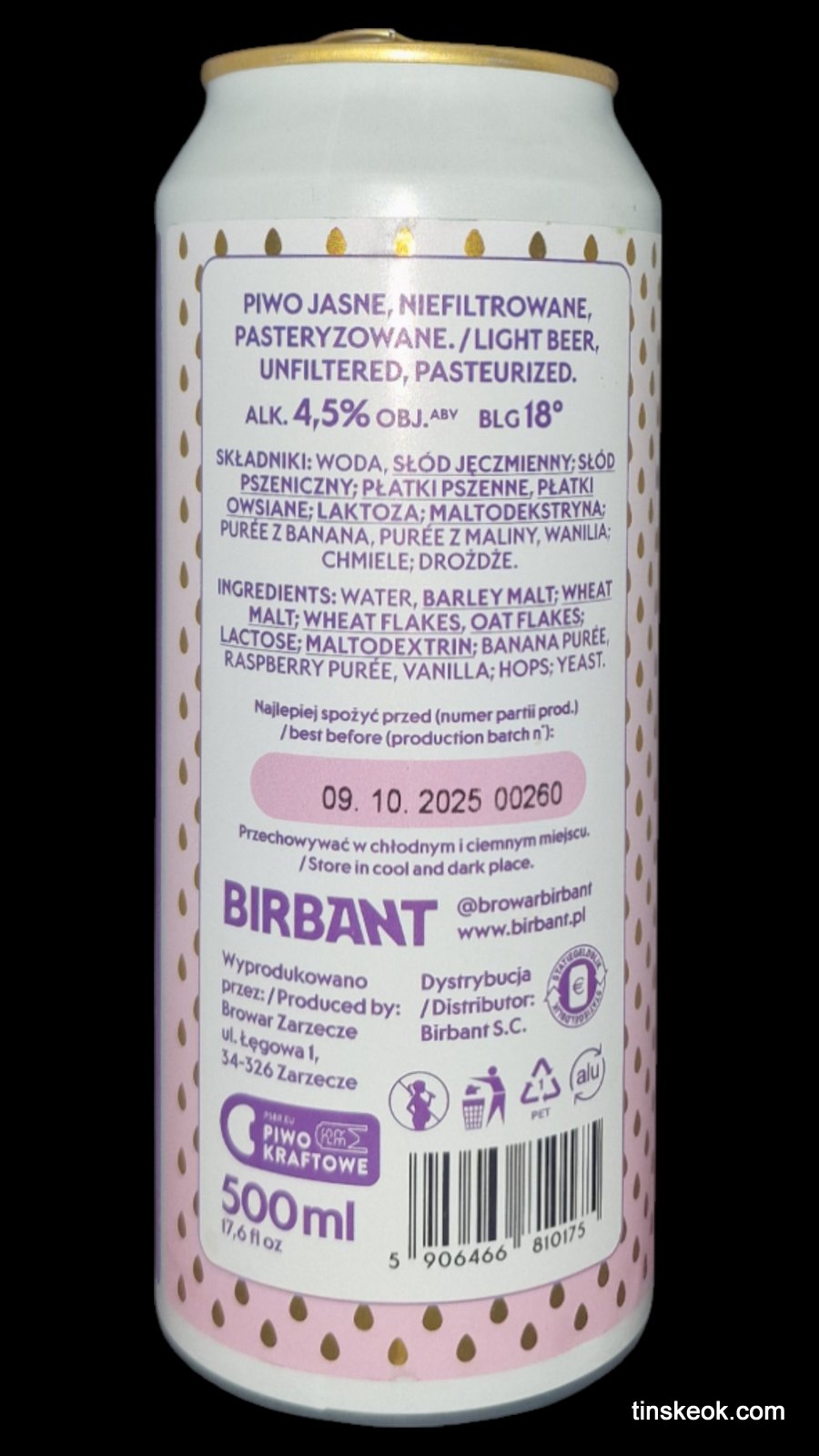 Birbant Midnight es una Pastry Sour con puré de plátano, puré de frambuesa y vainilla.