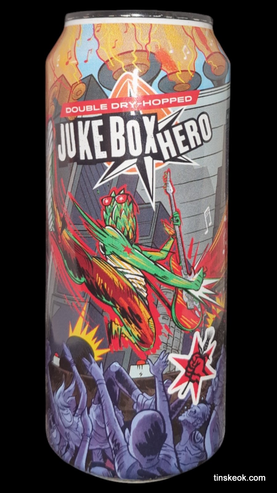 Una leyenda regresa al escenario y la eleva al máximo: un acorde potente de lúpulos modernos amplifica el coro de malta oscura y suave y una textura suave en boca. Un arpegio séptuple de lúpulos armoniosos alcanza notas altas de cítricos frescos, pino y aroma floral antes de un final limpio e intenso. ¡Anímate a disfrutar de un estilo IPA iconoclasta y carismático, encarnado por un héroe rockero con estrellas en los ojos!