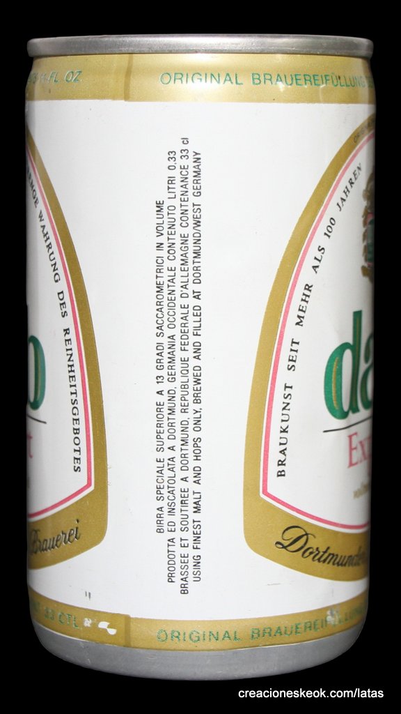 Dortmunder Actien Brauerei es una cervecería alemana en la ciudad de Dortmund , fundada en 1868 por los empresarios Laurenz Fischer y Heinrich y Friedrich Mauritz junto con el maestro cervecero Heinrich Herberz. Originalmente, se llamaba Herberz & Co Brewery (Bierbrauerei Herberz & Co.). Debido a que los negocios mejoraron constantemente, la compañía se expandió y se hizo pública en 1872, cambiando su nombre a "Dortmunder Actien Brauerei" (Dortmund Joint Stock Brewery). En 1879, la empresa comenzó a exportar su cerveza a nivel internacional. En 1881, el propio Carl von Linde equipó la cervecería con una de sus máquinas de refrigeración, lo que permitió un auge de cerveza fermentada en el fondo . En 1893, la cervecería estableció un laboratorio químico y bacteriológico. Aunque la Primera Guerra Mundial provocó un colapso en la producción de cerveza, la cervecería estaba equipada con su propia conexión ferroviaria en 1917. Después de la destrucción casi total de Dortmund en la Segunda Guerra Mundial , la cervecería fue reconstruida en 1949. De 1959 a 1963, DAB cambió de los viejos barriles de madera a nuevos de aluminio. La fábrica de cerveza Hansa, un competidor local, fue adquirida en 1971. Por sus motivos, DAB erigió una nueva cervecería moderna, terminada en 1983, en ese momento la más grande del área del Ruhr . Sin embargo, el costo de la adquisición de Hansa fue considerable y agobió a DAB durante los próximos años. Las decisiones cuestionables por parte de la gerencia de la compañía en la década de 1990 agravaron la situación, lo que llevó a un colapso de las marcas de la compañía y al aumento de la producción de marcas genéricas para aprovechar las capacidades. Incluso la adquisición de las marcas de otro competidor local en dificultades económicas, la fábrica de cerveza Kronen, no pudo detener la tendencia a la baja que hasta hoy, a pesar de que la compañía es la última cervecería en Dortmund, no se ha detenido por completo. El accionista más destacado hoy en día es el grupo Radeberger de cervecerías, que a su vez pertenece a la compañía fundada por August Oetker , hoy en día uno de los jugadores más destacados en la industria de alimentos y bebidas de Alemania. DAB produce una cerveza llamada DAB después de sus iniciales. DAB también fue la cerveza favorita de Erich Honecker , ex líder de Alemania Oriental. Fuente: Wikipedia