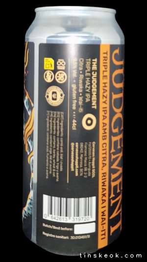The Judgment es una New England TIPA elaborada por Hoppit. Intensa, sedosa y extremadamente aromática. Presenta un perfil explosivo de frutas tropicales maduras, cítricos frescos y notas de melocotón gracias al trío de lúpulos Citra Hyperboost, Riwaka y Wai-iti. En boca es jugosa, envolvente y con un final ligeramente cálido que equilibra su 9,5%. Ideal para quienes buscan una experiencia IPA potente, afrutada y muy aromática.