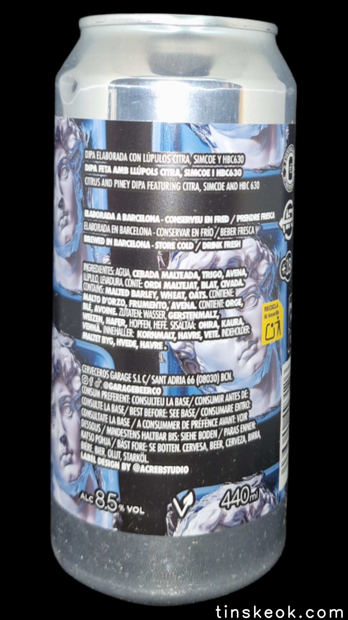 Garage Double Garage Winter IPA es una cerveza artesana de edición estacional elaborada por Garage Beer Co. en Barcelona, concebida para acompañar los días fríos con intensidad, carácter y un perfil aromático desbordante. Se trata de una IPA Imperial /Double que alcanza un mayor cuerpo y graduación alcohólica que una IPA convencional, pero sin renunciar a la frescura y la bebibilidad que caracteriza a la cervecera catalana. En su elaboración se utilizan tres lúpulos de referencia en el mundo craft: Citra, Simcoe y HBC 630, que se combinan para ofrecer una paleta aromática compleja y jugosa. El Citra aporta notas tropicales dominantes, como mango, papaya y maracuyá, acompañadas de toques cítricos vibrantes. El Simcoe refuerza con matices de pino, resina y un trasfondo herbal que aporta equilibrio frente a la fruta madura. Finalmente, el experimental HBC 630 añade un giro innovador con notas de cereza, frutos rojos y un ligero recuerdo a caramelo, que redondean la experiencia sensorial. Se presenta con un color dorado anaranjado intenso, ligeramente velado por su carácter turbio, coronado por una espuma cremosa y persistente de tono marfil. En nariz es intensa, con una explosión de frutas tropicales, cítricos frescos y un punto balsámico. En boca ofrece una textura sedosa y un amargor moderado pero firme, con capas de fruta jugosa, resina y un final cálido que recuerda a su carácter invernal y a su graduación elevada. La Garage Double Garage Winter IPA es, en definitiva, una cerveza que conjuga potencia y elegancia, ideal para los amantes del lúpulo que buscan una DIPA bien estructurada, moderna y con un perfil aromático que va más allá de lo habitual.