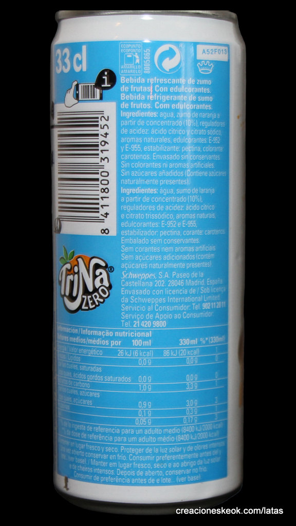 TriNa es una marca española de bebidas refrescantes sin gas. Fue el primer refresco de frutas sin burbujas en el mercado español sin gas, nacido en 1934 y con el nombre de TriNaranjus por su contenido: el zumo de tres naranjas. TriNa es una marca del grupo Schweppes Suntory España. Los orígenes de la TriNa se remontan a los años 30. Fue la creación de un pionero, el Dr. Trigo, que en 1934, desde su laboratorio de la calle Sagunto, lanzó en Valencia un refresco de naranja muy natural, sin burbujas, al que bautizó como Trinaranjus. Este nombre viene porque la base de su receta son tres variedades de naranja diferentes: Naranja Valencia, Salustiana y Cadenera. La compañía se expandió a lo largo de los años, hasta que en 1986 la marca renovó su imagen, su género (una Trina) y su nombre a TriNa. En 2009, Suntory Group adquiere la compañía Orangina Schweppes, y con ello, la marca TriNa. Este producto se comercializa en España y Portugal tanto en hostelería como en supermercados e hipermercados. Fuente : Wikipedia Leer un poco más de su historia