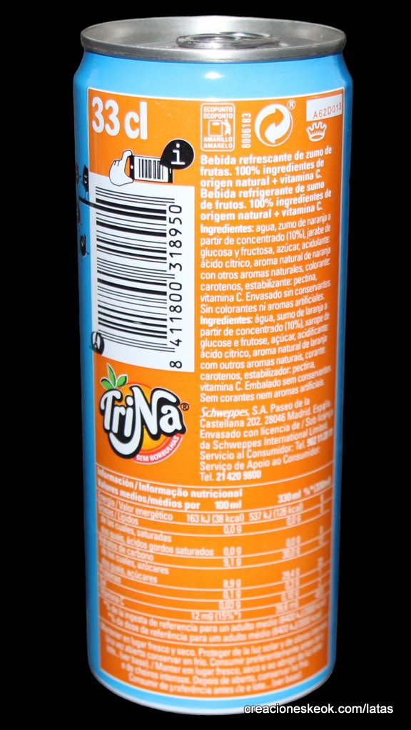 TriNa es una marca española de bebidas refrescantes sin gas. Fue el primer refresco de frutas sin burbujas en el mercado español sin gas, nacido en 1934 y con el nombre de TriNaranjus por su contenido: el zumo de tres naranjas. TriNa es una marca del grupo Schweppes Suntory España. Los orígenes de la TriNa se remontan a los años 30. Fue la creación de un pionero, el Dr. Trigo, que en 1934, desde su laboratorio de la calle Sagunto, lanzó en Valencia un refresco de naranja muy natural, sin burbujas, al que bautizó como Trinaranjus. Este nombre viene porque la base de su receta son tres variedades de naranja diferentes: Naranja Valencia, Salustiana y Cadenera. La compañía se expandió a lo largo de los años, hasta que en 1986 la marca renovó su imagen, su género (una Trina) y su nombre a TriNa. En 2009, Suntory Group adquiere la compañía Orangina Schweppes, y con ello, la marca TriNa. Este producto se comercializa en España y Portugal tanto en hostelería como en supermercados e hipermercados. Fuente : Wikipedia Leer un poco más de su historia