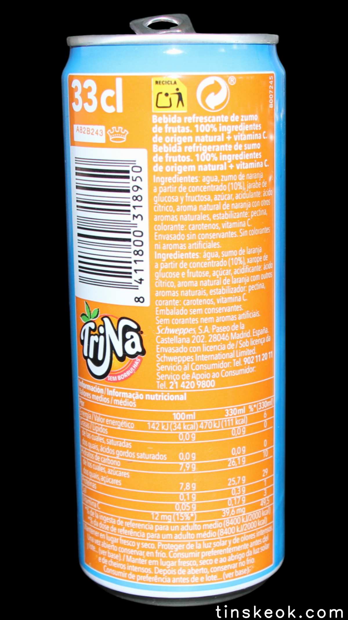 TriNa es una marca española de bebidas refrescantes sin gas. Fue el primer refresco de frutas sin burbujas en el mercado español sin gas, nacido en 1934 y con el nombre de TriNaranjus por su contenido: el zumo de tres naranjas. TriNa es una marca del grupo Schweppes Suntory España. Los orígenes de la TriNa se remontan a los años 30. Fue la creación de un pionero, el Dr. Trigo, que en 1934, desde su laboratorio de la calle Sagunto, lanzó en Valencia un refresco de naranja muy natural, sin burbujas, al que bautizó como Trinaranjus. Este nombre viene porque la base de su receta son tres variedades de naranja diferentes: Naranja Valencia, Salustiana y Cadenera. La compañía se expandió a lo largo de los años, hasta que en 1986 la marca renovó su imagen, su género (una Trina) y su nombre a TriNa. En 2009, Suntory Group adquiere la compañía Orangina Schweppes, y con ello, la marca TriNa. Este producto se comercializa en España y Portugal tanto en hostelería como en supermercados e hipermercados. Fuente : Wikipedia Leer un poco más de su historia