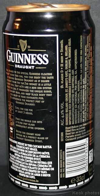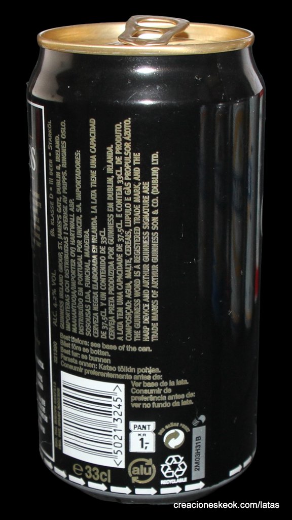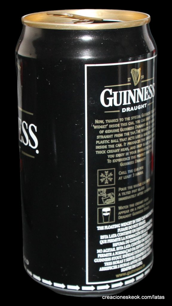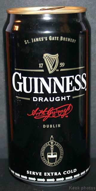 Guinness fue una de las primeras cervecerías en imprimir y etiquetar sus botellas para asegurarse de que los taberneros no mezclaran varias cervezas negras y las hicieran pasar por Guinness. Los que vendieran otras cervezas negras no podían portar el estandarte de Guinness y, en su lugar, tenían que solicitar las etiquetas propias de su cervecería, donde incluyeran su nombre y dirección. Así continuó hasta 1862, cuando se introdujo la etiqueta beige típica de Guinness. El diseño ha sufrido muchas modificaciones desde entonces, pero, a día de hoy, todas nuestras etiquetas tienen tres elementos: la firma de Arthur, nuestra legendaria y simbólica arpa y un nombre actualmente reconocido en todo el mundo... Guinness. Guinness (pronunciación en AFI : /?g?.n?s/) es una cerveza negra seca del tipo stout elaborada por primera vez por el cervecero Arthur Guinness en la empresa cervecera denominada St. James's Gate Brewery ubicada en la ciudad de Dublín, Irlanda. Guinness se elabora desde el año 1759. La cerveza se basa en el estilo porter, originado en Londres a principios de 1700. Se trata de una de las marcas de cerveza más conocidas y se exporta a la mayor parte de los países. Ha llegado a batir a muchos imitadores. La característica distintiva en el sabor es la cebada tostada que se mantiene sin fermentar. Durante muchos años una parte de la cerveza se envejecía para dar un sabor láctico, pero Guinness ha renunciado confirmar si esto sigue ocurriendo. La gruesa y cremosa espuma es resultado de una mezcla de nitrógeno añadida en el envasado. Lo que está comprobado es que no lleva café, pese a la creencia popular. La cerveza Guinness es un caso especial, donde una marca de bebida alcohólica hecha por una empresa privada ha llegado a identificar el alma de una nación. Guinness en Irlanda es toda una institución por derecho propio, llegando incluso a simbolizar al pueblo irlandés. En la actualidad y desde el año 1997 Guinness pertenece a la multinacional de bebidas espirituosas Diageo con sede en Londres, resultante de la fusión de Guinness UDV y Grand Metropolitan plc.