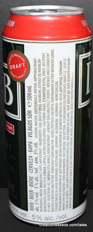 Dortmunder Actien Brauerei es una cervecería alemana en la ciudad de Dortmund , fundada en 1868 por los empresarios Laurenz Fischer y Heinrich y Friedrich Mauritz junto con el maestro cervecero Heinrich Herberz. Originalmente, se llamaba Herberz & Co Brewery (Bierbrauerei Herberz & Co.). Debido a que los negocios mejoraron constantemente, la compañía se expandió y se hizo pública en 1872, cambiando su nombre a "Dortmunder Actien Brauerei" (Dortmund Joint Stock Brewery). En 1879, la empresa comenzó a exportar su cerveza a nivel internacional. En 1881, el propio Carl von Linde equipó la cervecería con una de sus máquinas de refrigeración, lo que permitió un auge de cerveza fermentada en el fondo . En 1893, la cervecería estableció un laboratorio químico y bacteriológico. Aunque la Primera Guerra Mundial provocó un colapso en la producción de cerveza, la cervecería estaba equipada con su propia conexión ferroviaria en 1917. Después de la destrucción casi total de Dortmund en la Segunda Guerra Mundial , la cervecería fue reconstruida en 1949. De 1959 a 1963, DAB cambió de los viejos barriles de madera a nuevos de aluminio. La fábrica de cerveza Hansa, un competidor local, fue adquirida en 1971. Por sus motivos, DAB erigió una nueva cervecería moderna, terminada en 1983, en ese momento la más grande del área del Ruhr . Sin embargo, el costo de la adquisición de Hansa fue considerable y agobió a DAB durante los próximos años. Las decisiones cuestionables por parte de la gerencia de la compañía en la década de 1990 agravaron la situación, lo que llevó a un colapso de las marcas de la compañía y al aumento de la producción de marcas genéricas para aprovechar las capacidades. Incluso la adquisición de las marcas de otro competidor local en dificultades económicas, la fábrica de cerveza Kronen, no pudo detener la tendencia a la baja que hasta hoy, a pesar de que la compañía es la última cervecería en Dortmund, no se ha detenido por completo. El accionista más destacado hoy en día es el grupo Radeberger de cervecerías, que a su vez pertenece a la compañía fundada por August Oetker , hoy en día uno de los jugadores más destacados en la industria de alimentos y bebidas de Alemania. DAB produce una cerveza llamada DAB después de sus iniciales. DAB también fue la cerveza favorita de Erich Honecker , ex líder de Alemania Oriental. Fuente: Wikipedia