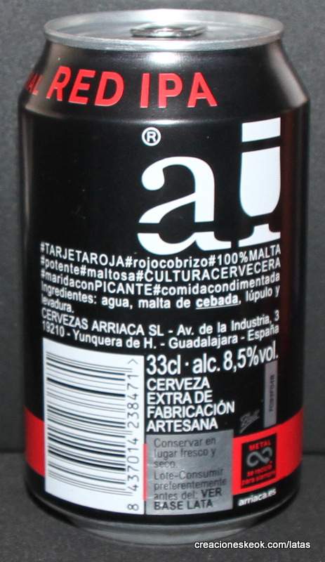 Arriaca IMPERIAL RED IPA es una cerveza estilo Red India Pale Ale de color rojo cobrizo, de potente carácter maltoso que se complementa con el aroma y sabor a lúpulo. Tipo: RED IPA Alc. Vol.: 8,2% Tª rec. Consumo: desde 7º. Vaso: pinta americana, “shaker”. NOTA DE CATA: Aspecto: De color rojo cobrizo, al servirse crea una corona de espuma de color beige compacta y muy duradera. Aroma: Desde el inicio se presenta compleja pero equilibrada. Los aromas a maltas tostadas, caramelo y tofe se equilibran con el potente aroma de los lúpulos americanos. Sabor: De cuerpo medio, tiene un fuerte carácter maltoso, con notas de caramelo, bollería, tofe y frutos rojos que se equilibran con el sabor a lúpulo, abriendo paso a un final ligeramente amargo. De trago fácil, sus 8,5% de alcohol pasan desapercibidos. Maridaje: Es una cerveza reposada para disfrutar sola o para tomar acompañando a comidas agridulces o fuertemente condimentadas. Observaciones: Arriaca Imperial Red IPA ha sido nombrada ganadora española en los World Beer Awards 2017 en Londres, medalla de plata en el Barcelona Beer Challenge 2018 y medalla de oro en el Barcelona Beer Challenge 2019.