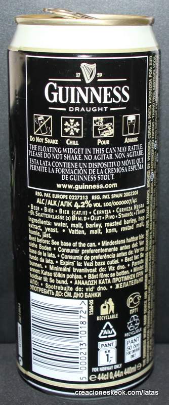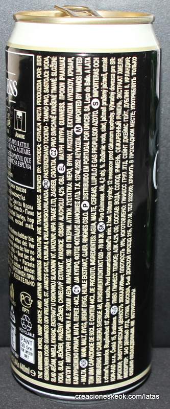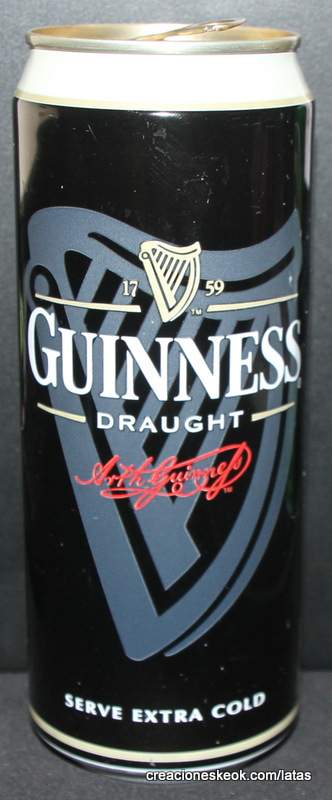 Guinness fue una de las primeras cervecerías en imprimir y etiquetar sus botellas para asegurarse de que los taberneros no mezclaran varias cervezas negras y las hicieran pasar por Guinness. Los que vendieran otras cervezas negras no podían portar el estandarte de Guinness y, en su lugar, tenían que solicitar las etiquetas propias de su cervecería, donde incluyeran su nombre y dirección. Así continuó hasta 1862, cuando se introdujo la etiqueta beige típica de Guinness. El diseño ha sufrido muchas modificaciones desde entonces, pero, a día de hoy, todas nuestras etiquetas tienen tres elementos: la firma de Arthur, nuestra legendaria y simbólica arpa y un nombre actualmente reconocido en todo el mundo... Guinness. Guinness (pronunciación en AFI : /?g?.n?s/) es una cerveza negra seca del tipo stout elaborada por primera vez por el cervecero Arthur Guinness en la empresa cervecera denominada St. James's Gate Brewery ubicada en la ciudad de Dublín, Irlanda. Guinness se elabora desde el año 1759. La cerveza se basa en el estilo porter, originado en Londres a principios de 1700. Se trata de una de las marcas de cerveza más conocidas y se exporta a la mayor parte de los países. Ha llegado a batir a muchos imitadores. La característica distintiva en el sabor es la cebada tostada que se mantiene sin fermentar. Durante muchos años una parte de la cerveza se envejecía para dar un sabor láctico, pero Guinness ha renunciado confirmar si esto sigue ocurriendo. La gruesa y cremosa espuma es resultado de una mezcla de nitrógeno añadida en el envasado. Lo que está comprobado es que no lleva café, pese a la creencia popular. La cerveza Guinness es un caso especial, donde una marca de bebida alcohólica hecha por una empresa privada ha llegado a identificar el alma de una nación. Guinness en Irlanda es toda una institución por derecho propio, llegando incluso a simbolizar al pueblo irlandés. En la actualidad y desde el año 1997 Guinness pertenece a la multinacional de bebidas espirituosas Diageo con sede en Londres, resultante de la fusión de Guinness UDV y Grand Metropolitan plc.