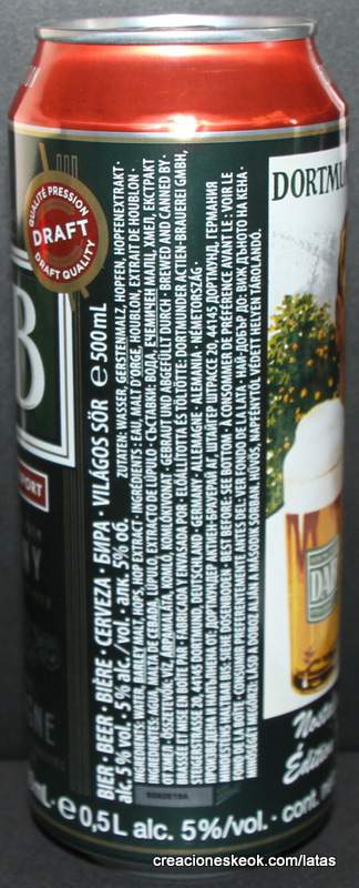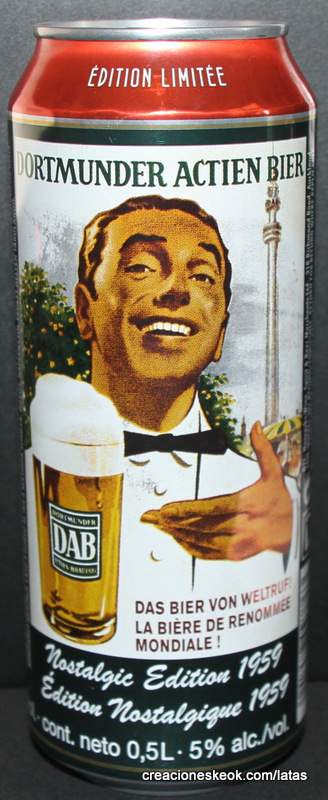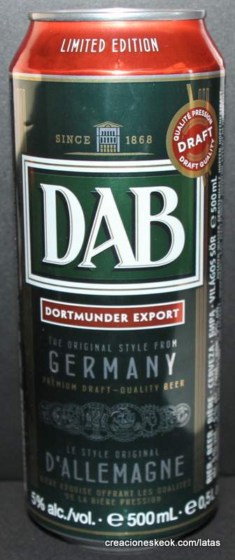 Dortmunder Actien Brauerei es una cervecería alemana en la ciudad de Dortmund , fundada en 1868 por los empresarios Laurenz Fischer y Heinrich y Friedrich Mauritz junto con el maestro cervecero Heinrich Herberz. Originalmente, se llamaba Herberz & Co Brewery (Bierbrauerei Herberz & Co.). Debido a que los negocios mejoraron constantemente, la compañía se expandió y se hizo pública en 1872, cambiando su nombre a "Dortmunder Actien Brauerei" (Dortmund Joint Stock Brewery). En 1879, la empresa comenzó a exportar su cerveza a nivel internacional. En 1881, el propio Carl von Linde equipó la cervecería con una de sus máquinas de refrigeración, lo que permitió un auge de cerveza fermentada en el fondo . En 1893, la cervecería estableció un laboratorio químico y bacteriológico. Aunque la Primera Guerra Mundial provocó un colapso en la producción de cerveza, la cervecería estaba equipada con su propia conexión ferroviaria en 1917. Después de la destrucción casi total de Dortmund en la Segunda Guerra Mundial , la cervecería fue reconstruida en 1949. De 1959 a 1963, DAB cambió de los viejos barriles de madera a nuevos de aluminio. La fábrica de cerveza Hansa, un competidor local, fue adquirida en 1971. Por sus motivos, DAB erigió una nueva cervecería moderna, terminada en 1983, en ese momento la más grande del área del Ruhr . Sin embargo, el costo de la adquisición de Hansa fue considerable y agobió a DAB durante los próximos años. Las decisiones cuestionables por parte de la gerencia de la compañía en la década de 1990 agravaron la situación, lo que llevó a un colapso de las marcas de la compañía y al aumento de la producción de marcas genéricas para aprovechar las capacidades. Incluso la adquisición de las marcas de otro competidor local en dificultades económicas, la fábrica de cerveza Kronen, no pudo detener la tendencia a la baja que hasta hoy, a pesar de que la compañía es la última cervecería en Dortmund, no se ha detenido por completo. El accionista más destacado hoy en día es el grupo Radeberger de cervecerías, que a su vez pertenece a la compañía fundada por August Oetker , hoy en día uno de los jugadores más destacados en la industria de alimentos y bebidas de Alemania. DAB produce una cerveza llamada DAB después de sus iniciales. DAB también fue la cerveza favorita de Erich Honecker , ex líder de Alemania Oriental. Fuente: Wikipedia