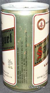 San Miguel, Fábricas de Cerveza, S.L.U., comercialmente, Cervezas San Miguel es una empresa cervecera española con sede en Málaga1? y fundada en 1890 en Manila, capital de la entonces Capitanía General de las Filipinas, encargada de la producción de diversos tipos de cervezas y productos derivados bajo la insignia "Cervezas San Miguel". Forma parte del grupo empresarial Grupo Mahou-San Miguel. Adicionalmente, Cervezas San Miguel posee fábricas en Lérida, Burgos y Málaga. Fuente: Wikipedia