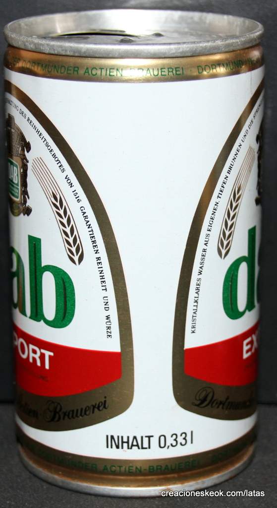 Dortmunder Actien Brauerei es una cervecería alemana en la ciudad de Dortmund , fundada en 1868 por los empresarios Laurenz Fischer y Heinrich y Friedrich Mauritz junto con el maestro cervecero Heinrich Herberz. Originalmente, se llamaba Herberz & Co Brewery (Bierbrauerei Herberz & Co.). Debido a que los negocios mejoraron constantemente, la compañía se expandió y se hizo pública en 1872, cambiando su nombre a "Dortmunder Actien Brauerei" (Dortmund Joint Stock Brewery). En 1879, la empresa comenzó a exportar su cerveza a nivel internacional. En 1881, el propio Carl von Linde equipó la cervecería con una de sus máquinas de refrigeración, lo que permitió un auge de cerveza fermentada en el fondo . En 1893, la cervecería estableció un laboratorio químico y bacteriológico. Aunque la Primera Guerra Mundial provocó un colapso en la producción de cerveza, la cervecería estaba equipada con su propia conexión ferroviaria en 1917. Después de la destrucción casi total de Dortmund en la Segunda Guerra Mundial , la cervecería fue reconstruida en 1949. De 1959 a 1963, DAB cambió de los viejos barriles de madera a nuevos de aluminio. La fábrica de cerveza Hansa, un competidor local, fue adquirida en 1971. Por sus motivos, DAB erigió una nueva cervecería moderna, terminada en 1983, en ese momento la más grande del área del Ruhr . Sin embargo, el costo de la adquisición de Hansa fue considerable y agobió a DAB durante los próximos años. Las decisiones cuestionables por parte de la gerencia de la compañía en la década de 1990 agravaron la situación, lo que llevó a un colapso de las marcas de la compañía y al aumento de la producción de marcas genéricas para aprovechar las capacidades. Incluso la adquisición de las marcas de otro competidor local en dificultades económicas, la fábrica de cerveza Kronen, no pudo detener la tendencia a la baja que hasta hoy, a pesar de que la compañía es la última cervecería en Dortmund, no se ha detenido por completo. El accionista más destacado hoy en día es el grupo Radeberger de cervecerías, que a su vez pertenece a la compañía fundada por August Oetker , hoy en día uno de los jugadores más destacados en la industria de alimentos y bebidas de Alemania. DAB produce una cerveza llamada DAB después de sus iniciales. DAB también fue la cerveza favorita de Erich Honecker , ex líder de Alemania Oriental. Fuente: Wikipedia