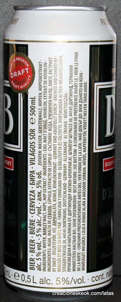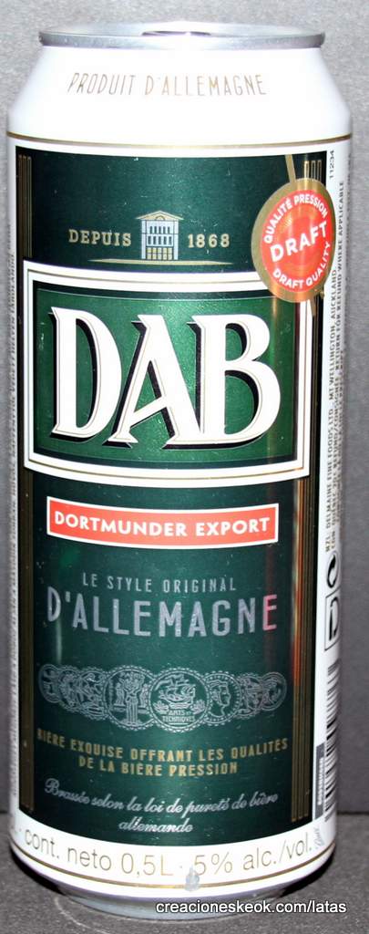 Dortmunder Actien Brauerei es una cervecería alemana en la ciudad de Dortmund , fundada en 1868 por los empresarios Laurenz Fischer y Heinrich y Friedrich Mauritz junto con el maestro cervecero Heinrich Herberz. Originalmente, se llamaba Herberz & Co Brewery (Bierbrauerei Herberz & Co.). Debido a que los negocios mejoraron constantemente, la compañía se expandió y se hizo pública en 1872, cambiando su nombre a "Dortmunder Actien Brauerei" (Dortmund Joint Stock Brewery). En 1879, la empresa comenzó a exportar su cerveza a nivel internacional. En 1881, el propio Carl von Linde equipó la cervecería con una de sus máquinas de refrigeración, lo que permitió un auge de cerveza fermentada en el fondo . En 1893, la cervecería estableció un laboratorio químico y bacteriológico. Aunque la Primera Guerra Mundial provocó un colapso en la producción de cerveza, la cervecería estaba equipada con su propia conexión ferroviaria en 1917. Después de la destrucción casi total de Dortmund en la Segunda Guerra Mundial , la cervecería fue reconstruida en 1949. De 1959 a 1963, DAB cambió de los viejos barriles de madera a nuevos de aluminio. La fábrica de cerveza Hansa, un competidor local, fue adquirida en 1971. Por sus motivos, DAB erigió una nueva cervecería moderna, terminada en 1983, en ese momento la más grande del área del Ruhr . Sin embargo, el costo de la adquisición de Hansa fue considerable y agobió a DAB durante los próximos años. Las decisiones cuestionables por parte de la gerencia de la compañía en la década de 1990 agravaron la situación, lo que llevó a un colapso de las marcas de la compañía y al aumento de la producción de marcas genéricas para aprovechar las capacidades. Incluso la adquisición de las marcas de otro competidor local en dificultades económicas, la fábrica de cerveza Kronen, no pudo detener la tendencia a la baja que hasta hoy, a pesar de que la compañía es la última cervecería en Dortmund, no se ha detenido por completo. El accionista más destacado hoy en día es el grupo Radeberger de cervecerías, que a su vez pertenece a la compañía fundada por August Oetker , hoy en día uno de los jugadores más destacados en la industria de alimentos y bebidas de Alemania. DAB produce una cerveza llamada DAB después de sus iniciales. DAB también fue la cerveza favorita de Erich Honecker , ex líder de Alemania Oriental. Fuente: Wikipedia