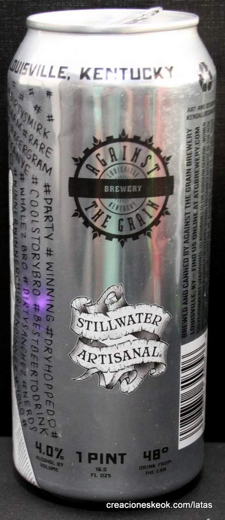 Stillwater y Against the grain se unieron para hacer esta cerveza lager de moda. El brebaje se vertió con medio dedo de cabeza blanca. Se disipó instantáneamente y no dejó ningún cordón en el vidrio. Como era de esperar, la carrocería era de un color pajizo claro con alta carbonatación. La nariz era suave, incluso para el estilo. Tenía grano molido y un toque de zorrillo. Después de algunos olfateo, apareció hierba recién cortada, aunque muy leve. El sabor comenzó con el mismo grano molido que la nariz. Apareció una cáscara de limón vieja. Los sabores estaban limpios, crujientes e inofensivos. Tenía un cuerpo más grueso de lo esperado para el estilo con carbonatación similar a la gaseosa. Se acompañó de un largo final con grano y hierba. Esto sería una gran cerveza para regalar a alguien a quien le gustan las macro-lagers o para llevar una hielera en un día caluroso.